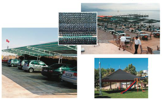 • Gölgeleme oranı %35 %75 %95 dir. • Seracılık,bahçecilik,çiçekçilik ve benzeri tarım alanlarında kullanılır • Turistlik amaçlı plajlarda,spor sahalarında,otoparklarda gölgelik ve rüzgarlık olarak kullanılmaktadır • Koyu yeşil krem turuncu mavi ideal renktir. • Zararlı güneş ışınlrına karşı koruma sağlar. • UV katkılı olmasından dolayı uzun yıllar boyunca kullanılır |